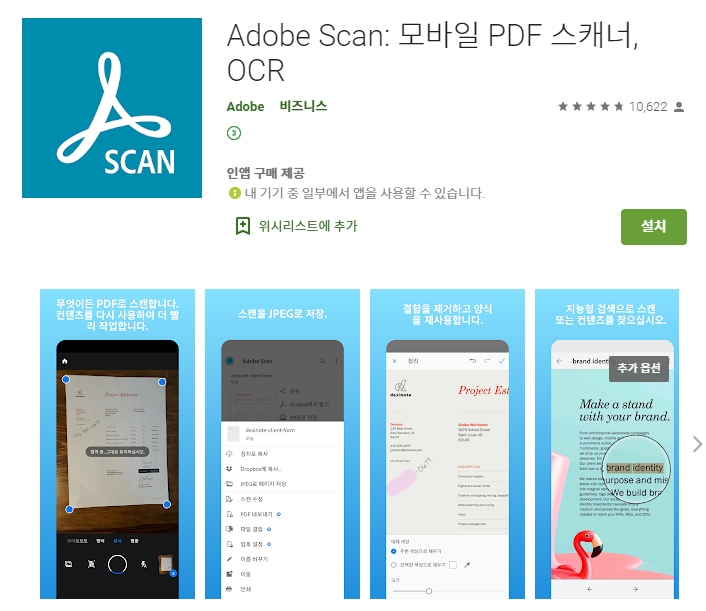 두 번째 소개할 어플은 Adobe Scan (모바일 PDF 스캐너) 어플입니다. 이것도 사진 속의 글자를 인식해서 텍스트로 변환이 가능합니다~ 아래는 Adobe Scan (모바일 PDF 스캐너) 어플에 대한 자세한 설명이니 참고하세요~