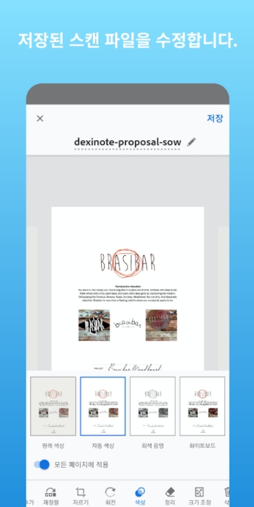 -휴대폰 문서, 혼란스러운 배경 자동 제거, 고화질 JPEG 사진 또는 PDF 파일 생성