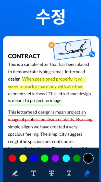 DocScan를 이용해 스캔 결과물에 전자 서명을 추가할 수 있습니다. PDF 파일을 전송하거나 인쇄하기 전에 손쉽게 서명할 수 있어요!