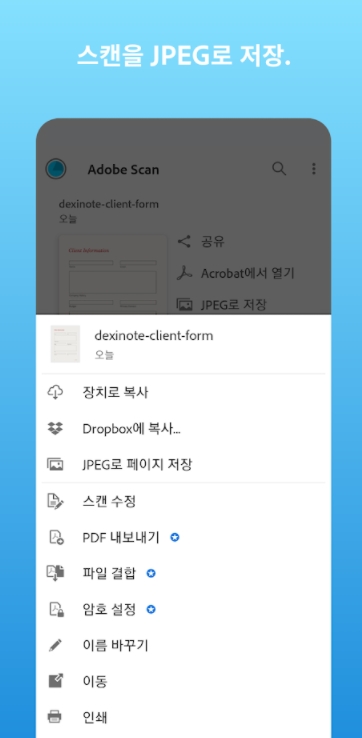4. 필요한 경우 PDF 무료 스캔 앱또는 JPEG로 내 보냅니다.