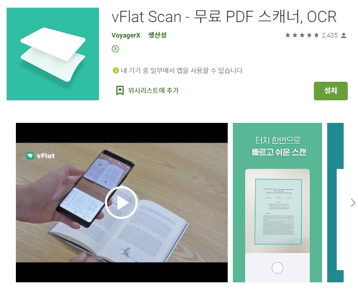 1. vFlat Scan (무료 PDF 스캐너) 어플