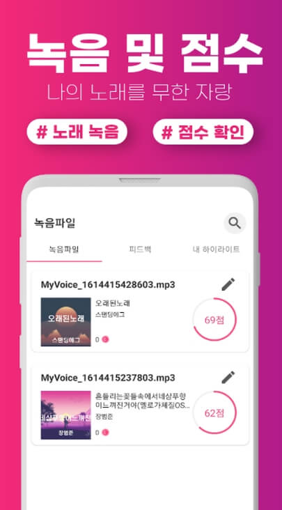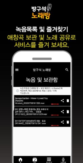 노래 부르고 녹음 노래를 감상 및 공유할 수 있으며,