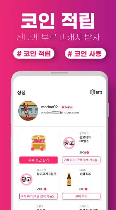 ▶ 그냥 노래하는 걸 좋아해서 깔았는데 좋아하는 노래도 부르고, 포인트를 모아 기프티콘이나 광고 제거권 등을 살 수 있는 게 너무 좋네요!! 진짜 추천드립니다!! 가사를 잘 몰라도 가사가 표시돼서 잘 부를 수 있었습니다! 꼭 한번 설치해보시길 바라요~!