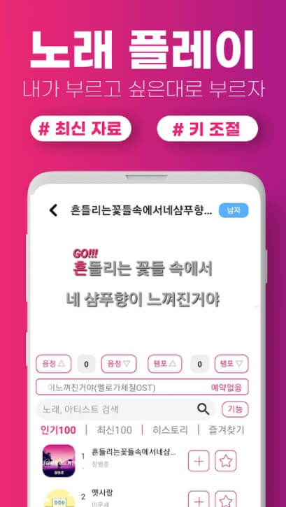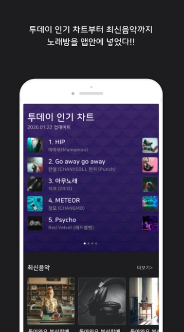 투데이 인기 차트부터 최신 음악까지 노래방을 앱 안에 넣었다!!