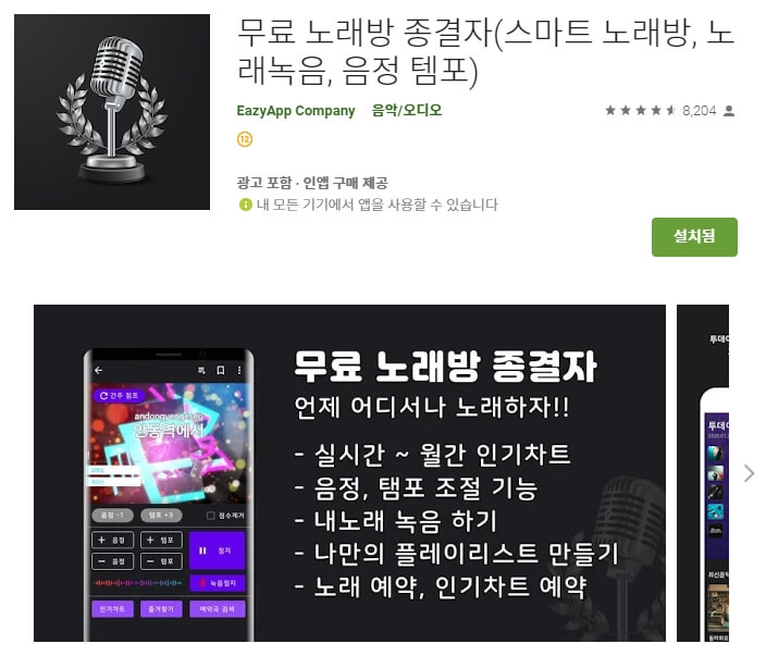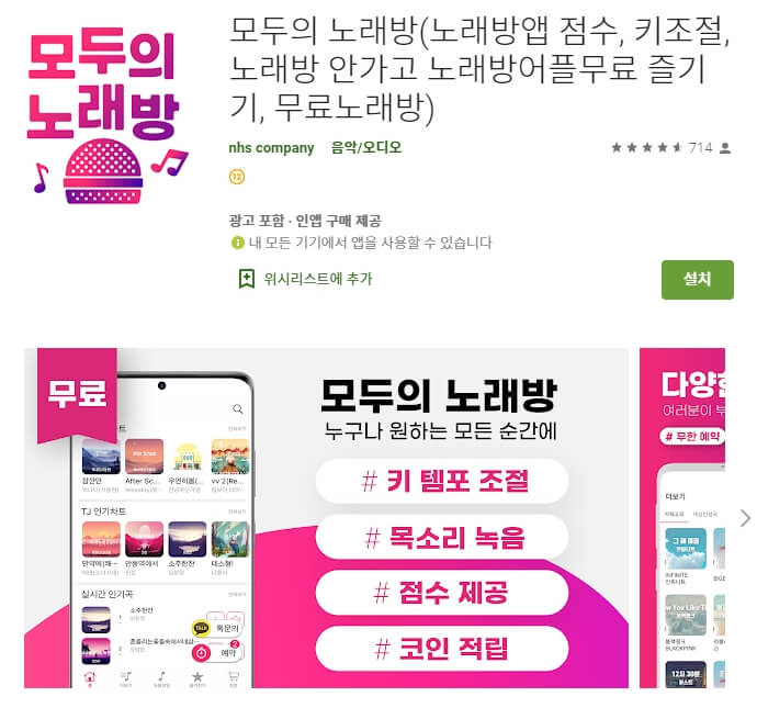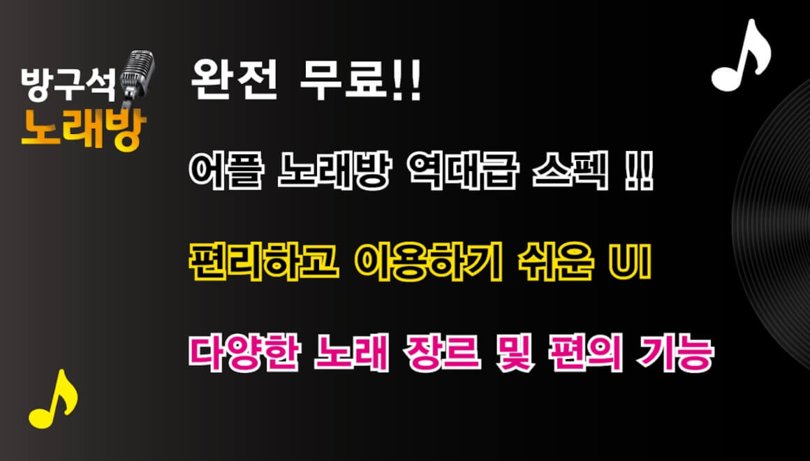 녹음/키 조절/점수/무료 노래방/무료 음악 듣기/코인 노래방 전부 지원합니다! 심지어 동요 까지!!