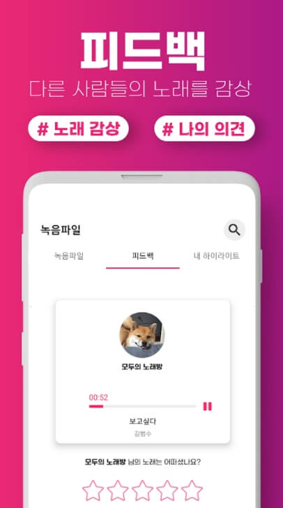 노래 부르고 녹음 노래를 감상 및 공유할 수 있으며,