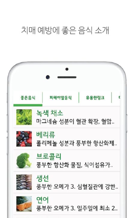 두 번째 소개할 어플은 치매 예방에 좋은 앱(뇌 건강, 알츠하이머, 치매 테스트) 어플입니다. 치매 테스트를 해볼 수가 있으며 치매예방에 좋은 음식 정보와 다양한 치매 관련 정보를 접하실 수가 있습니다. 아래는 치매 예방에 좋은 앱(뇌 건강, 알츠하이머, 치매 테스트) 어플에 대한 자세한 설명이니 참고하세요~