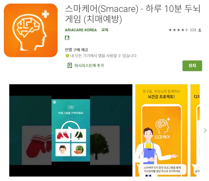 스마케어(치매예방) 어플을 만들어 주신 개발자님 감사합니다~