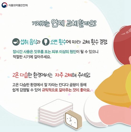 장시간 사용은 짓무름 또는 피부 이상의 원인이 될 수 있으니 적절한 시기에 갈아주세요.
