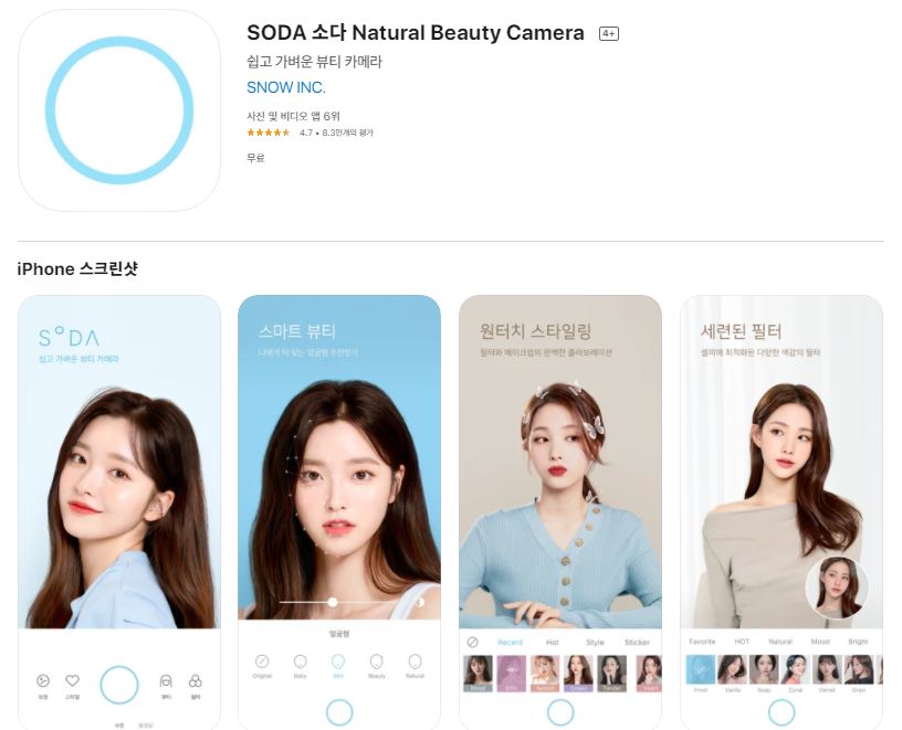 ▶ 사진 화질, 필터 제일 만족하고 예뻐요. snow, b612 계열사 카메라라고 하는데 soda가 제일 선명하고 예쁘고 심플해요 필터 업데이트는 계속 하셔도