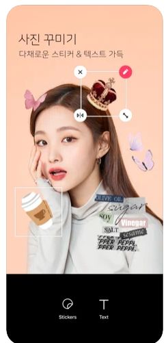 ▶ 여러가지 주제로 예쁘고 귀여운 것들이 많아서 좋아요! 글고 자신이 만들 수도 있고 찍고나서 보정도 할 수 있어서 좋아요!