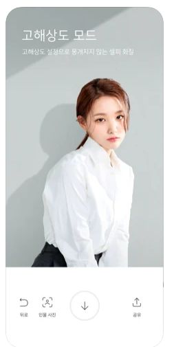 • 뭉게지지 않는 셀카 화질을 위한 고해상도 모드