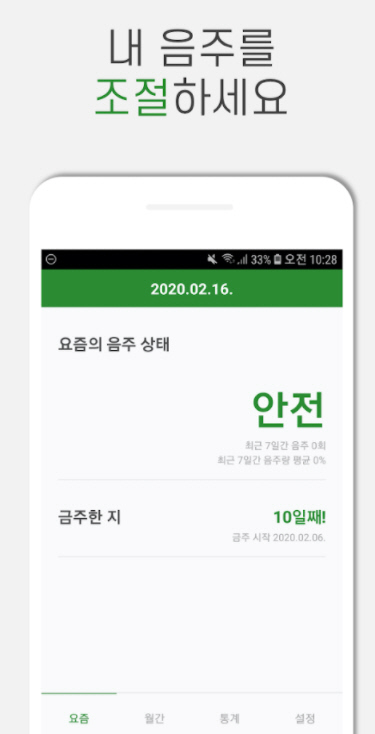 - 첫 화면에서 금주 기록을 확인하여 마음을 다잡으세요.