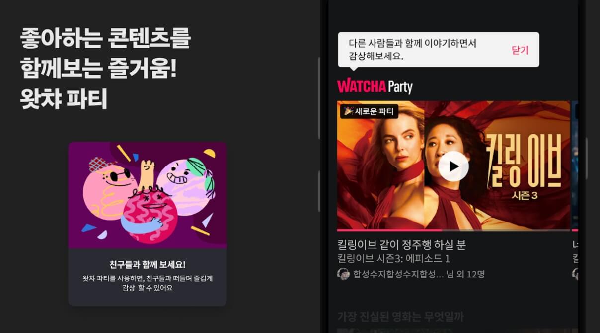 ▶ 드라마, 영화뿐만 아니라 다큐멘터리도 있는 게 신기했고, 드라마, 영화에서도 다양한 작품들 만나볼 수 있어서 좋았습니다. 또 파티 시스템 등의 디테일도 좋았습니다.