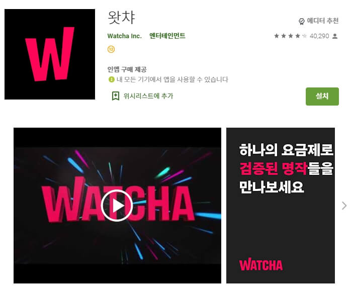 왓챠 (영화 드라마 다시 보기) 어플을 만들어 주신 개발자님 감사합니다~