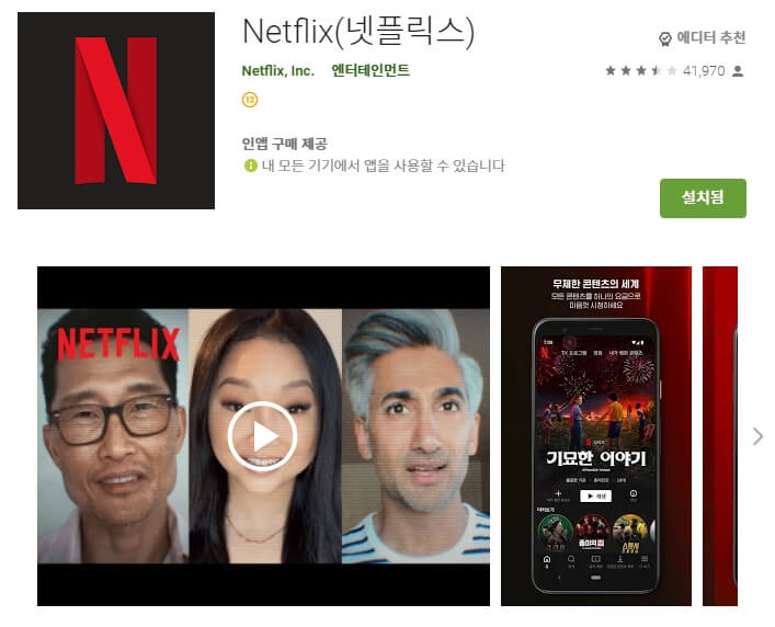 ▶ 넷플릭스 아주 좋습니다 돈을 내도 아주 잘 돌아가고 화질이 아주 좋아요!! 이렇게 계속 좋은 앱이 있길 바래서 리뷰를 남깁니다~