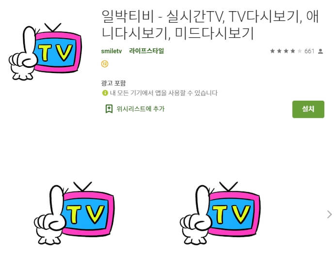 네 번째 소개할 어플은 일박 티비 (실시간 TV, 미드 다시 보기) 어플입니다. 실시간 방송 보기도 가능하며 완결된 미드도 다시 보기가 가능하 빈다. 애니메이션은 덤입니다. ^^ 아래는 일박 티브이 (실시간 TV, 미드 다시 보기) 어플에 대한 자세한 설명이니 참고하세요~
