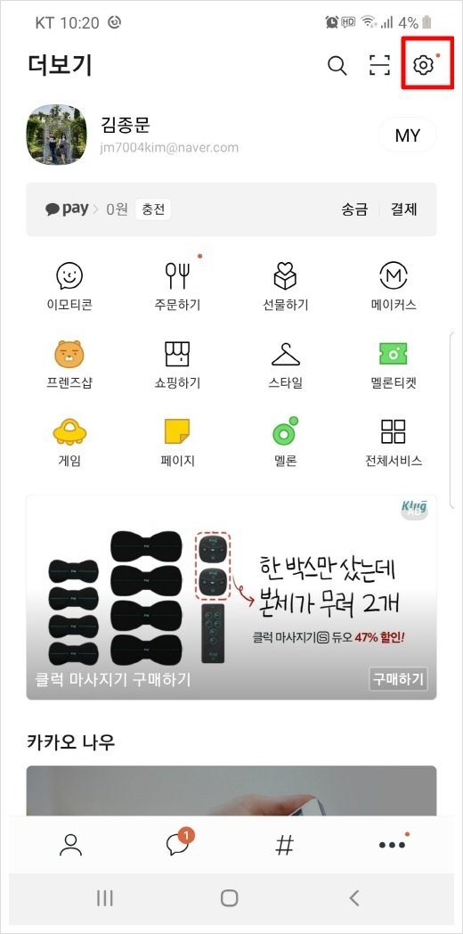 ▲ 더보기 아이콘을 누르시면 위와같은 화면이 반길것입니다. 보이시는 이미지 처럼 우측상단의 설정아이콘을 눌러주세요~