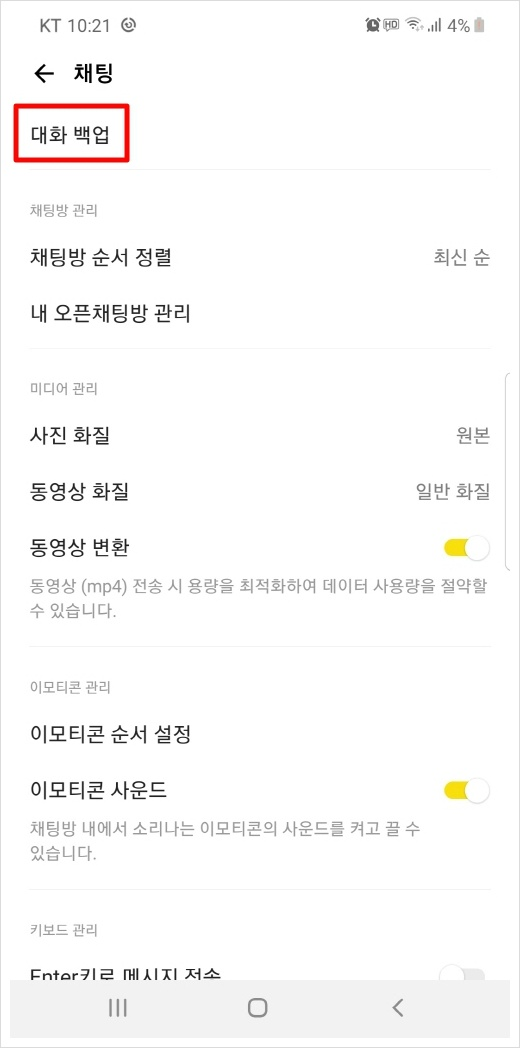 ● 카카오톡 대화내용 백업 방법