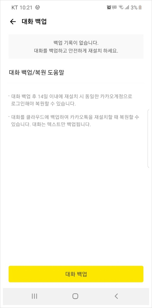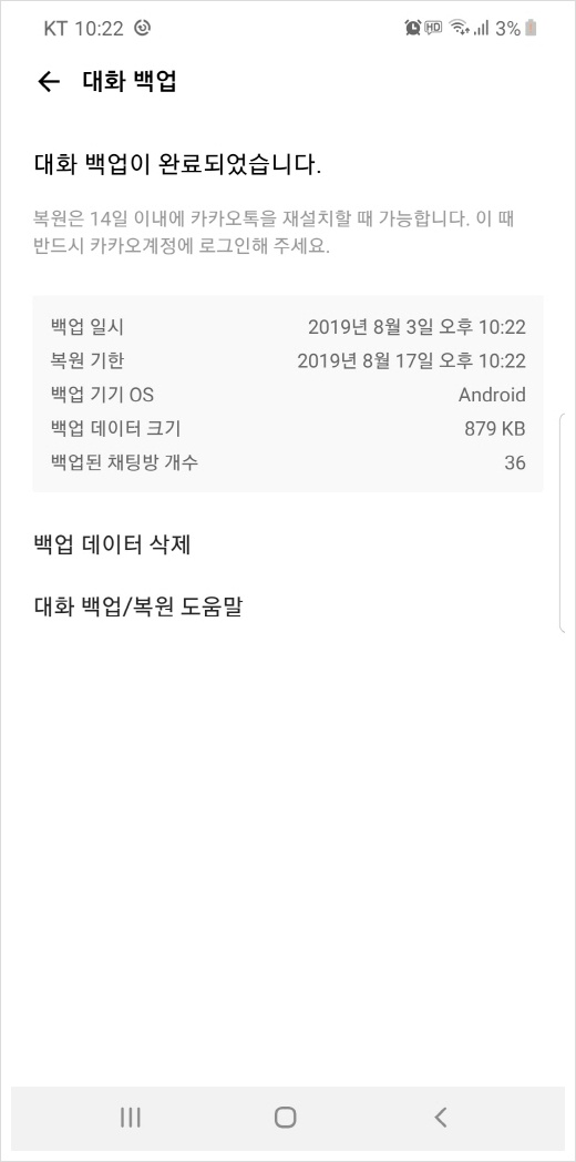 3. 카카오톡 대화내용 백업 복원시 주의사항