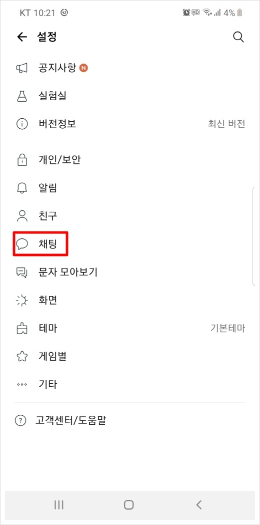 ▲ 그러면 위와같은 화면이 나올텐데요 "채팅"이라는 메뉴를 눌러주세요