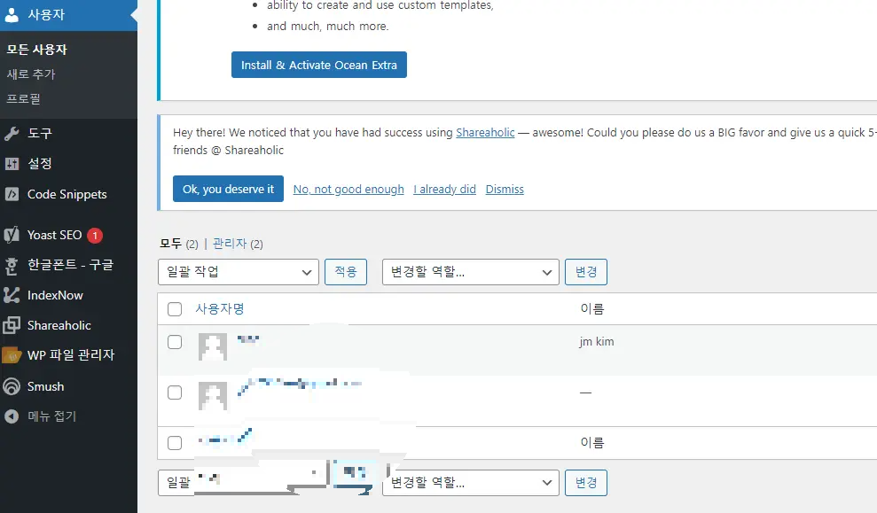 사용자 - 모든 사용자 를 클릭해서 들어가면 위 화면처럼 나옵니다. 좀 전에 만든 사용자를 클릭해서 사용자 편집 화면으로 들어가세요.