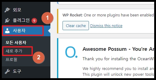 워드프레스 관리자 화면에서 사용자 클릭후 새로추가를 클릭해주세요.