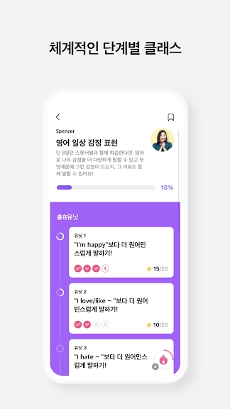 - 데일리 표현 클립: 매일 새로운 표현을 유용한 주제 단위로 제공