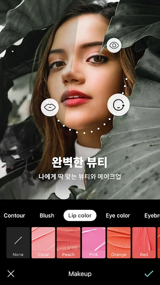 - AR 메이크업 : 데일리부터 트렌디 메이크업까지 자연스러운 룩을 연출하세요, 뷰티와 메이크업은 나에게 어울리도록 조절해 사용할 수 있어요.