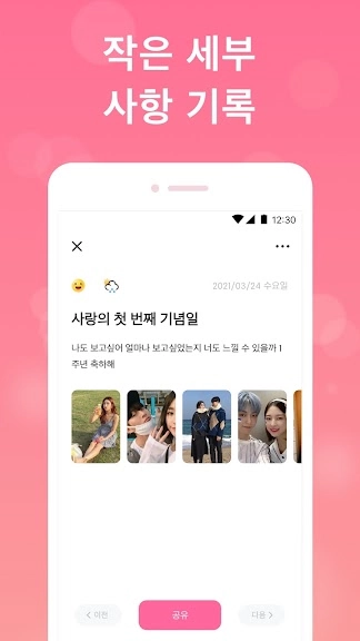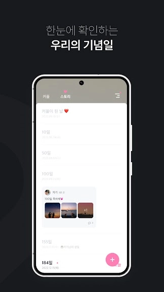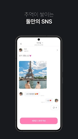 스토리를 기록하고 사진을 공유하며 연인과의 추억을 기록하세요.