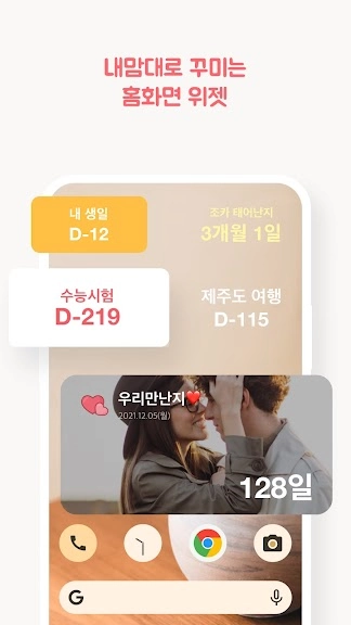 생일, 커플 기념일, 결혼 기념일 등은 물론 시험, 수능 등 각종 디데이 날짜 자동계산.