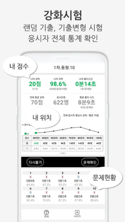- 문제 : 4지선다 문제로 기출 형식에 맞는 문제가 출제됩니다.