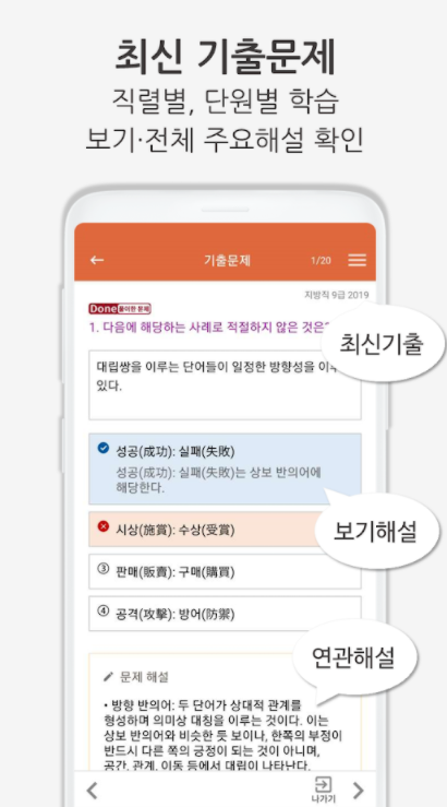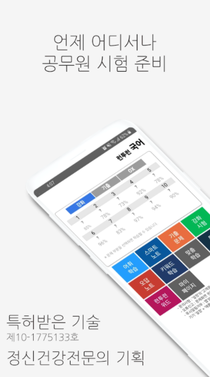 국어 기출문제에서 꼭 알아야 하고, 외워야 할 필수 핵심 개념들로만 제작되었습니다. 언제 어디서나 쉽고 편하게 앱으로 학습하시는 동안 국어 시험 목표 점수에 도달하실 수 있을 것입니다.