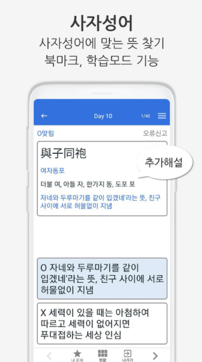 ▶ 공시생분들께 추천드리는 어플입니다. 처음에 폰으로 언제 어디서나 문제를 풀 수 있는 어플을 찾다가 발견했었는데 문제뿐만 아니라 강화 학습, 모의고사, 그리고 또 국어 단어들을 외울 수 있어 좋았습니다. 다른 과목들 또한 이런 식으로 o, x퀴즈도 하고 복습할 수 있어 좋았습니다. 덕분에 서울시, 국가직 필기 합격할 수 있었어요.