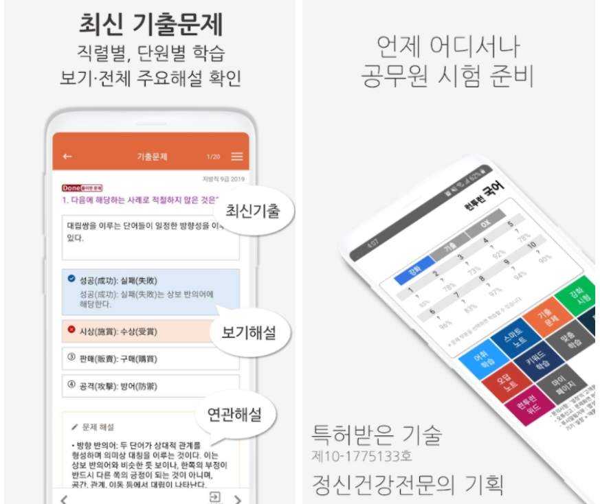두 번째 소개할 어플은 공무원 국어 기출 어플입니다.