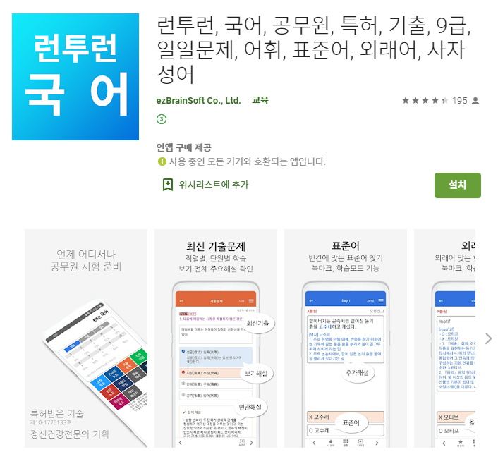 아래는 런투런 국어 공무원 기출문제 어플에 대한 자세한 설명이니 참고하세요~ ^^
