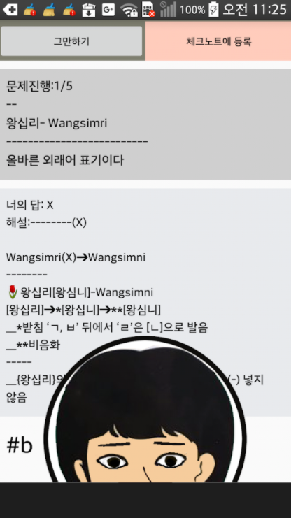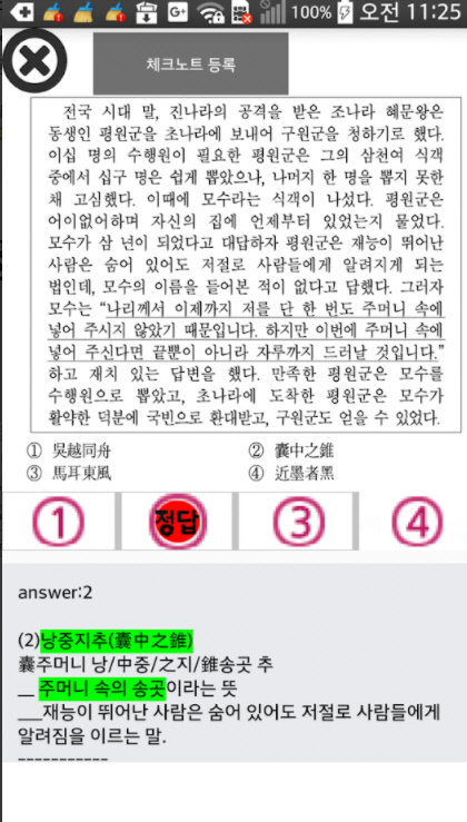 틀리거나 혼동되는 문제만 체크 노트에 등록한 후