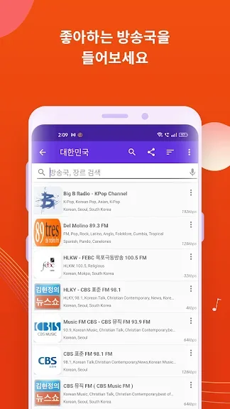 - 한국 라디오 방송 외 해외 방송 채널 제공