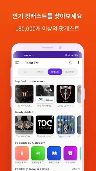 18개 이상의 카테고리와 100개 이상의 언어로 인기 팟캐스트를 듣고 다운로드하세요