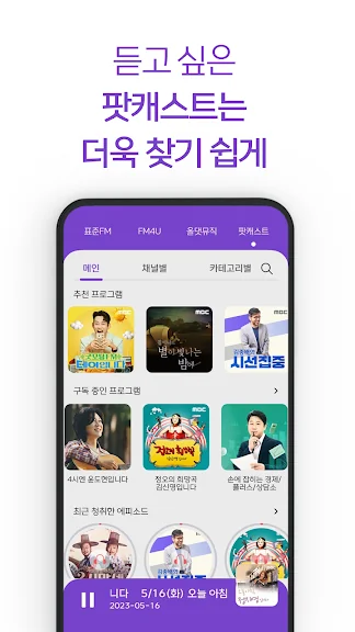 - MBC FM4U : 정오의 희망곡과 배철수의 음악캠프 등 다양한 방송을 청취하실 수 있습니다.