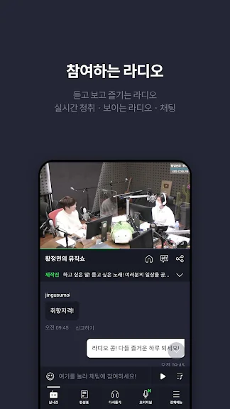 - "참여하는 라디오" 듣고 보고 즐기는 라디오! 실시간 채팅에 지금 참여하세요.
