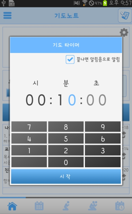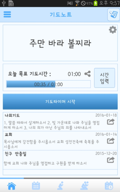 그리고 하루에 목표 기도시간을 설정하여 기도생활을 해보세요.