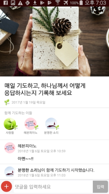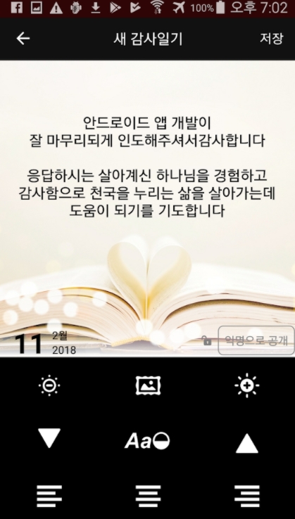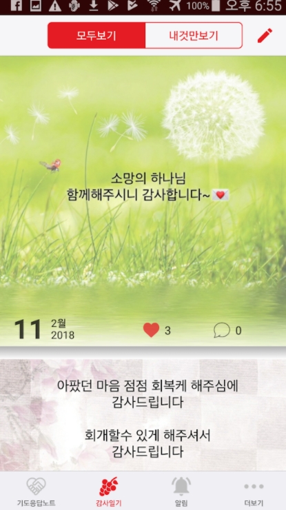 매일 감사 매일 기도 어플을 만들어 주신 개발자님 감사합니다~ ^^*
