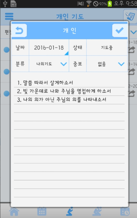 ▶ 사용하기 편리한 기도응답 노트 어플을 원하시는 분