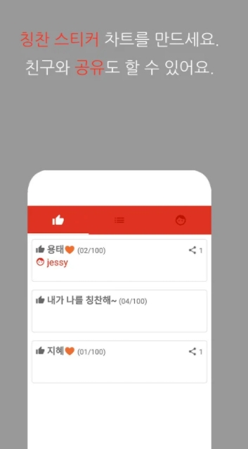 - 스티커 공유하기 : 연인이나 아이들에게 앱 설치 후 칭찬 스티커 차트를 공유하세요.