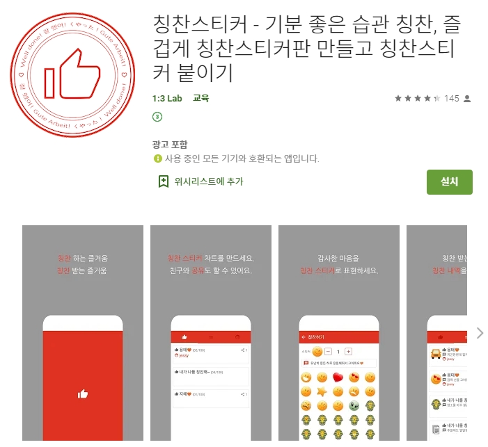 두 번째 소개할 어플은 칭찬 스티커 어플입니다.