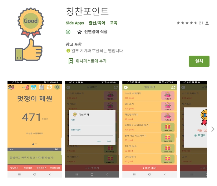 아래는 칭찬 포인트 어플에 대한 자세한 설명이니 참고하세요~ ^^