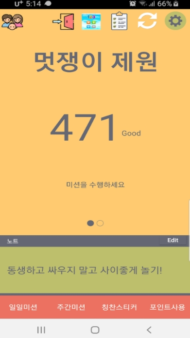 부모님이 일일 미션과 주간 미션을 주시고 아이들이 미션을 수행하면 포인트를 부여해 주세요.