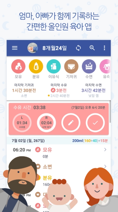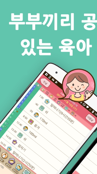 육아 정보가 즉시 공유되기 때문에 부모 모두 언제든지 아기의 성장 기록을 확인할 수 있습니다. 엄마가 외출한 동안 아빠가 아기를 돌보는 날에도, 엄마는 아빠가 기록한 아기 돌봄 정보를 모니터하고 분유량 체크를 통해 집에 있는 아기에 대해 걱정할 필요가 없어집니다.