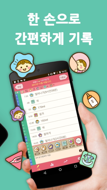 ▶ 신생아 때부터 애 둘 기르면서 유용하게 썼습니다 울거나 징징거리면 배고픈지 졸린지 베이비 타임 보면서 알기 쉬웠습니다. 아플 때도 체온 기록, 투약시간, 증상 메모 등등 덕분에 병원 가서도 의사 선생님께 설명하기 좋아 정말 잘 썼습니다 아쉬운 점은 예전 기록 검색하기 어려운 것, 더 이상 기록할 필요가 없는 나이가 되어서 종료하고 싶지만 종료하는 기능이 없다는 것입니다. 무료로 이렇게 좋은 어플 제공해주셔서 너무나 감사합니다
